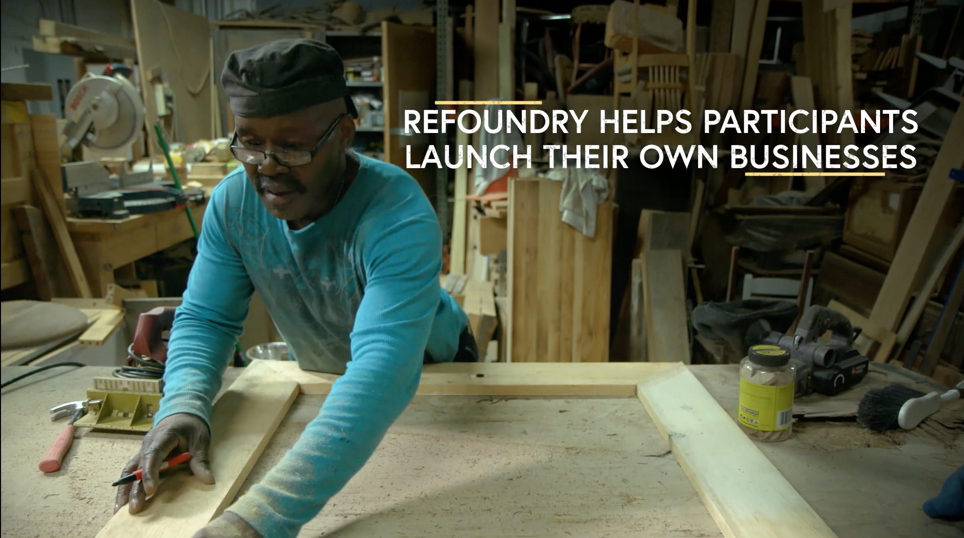 Refoundry trains formerly incarcerated people to repurpose reclaimed materials into home furnishings and mentors them into their own business and career path. Our curriculum includes high-level craft skills, internet, finance, business, resumé-building and interview skills, apprenticeships, business coaching and mental health/addiction referrals as needed.